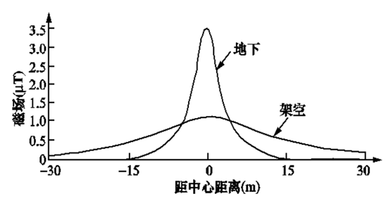 圖3高、中壓地下電纜產(chǎn)生的地面磁場(chǎng)