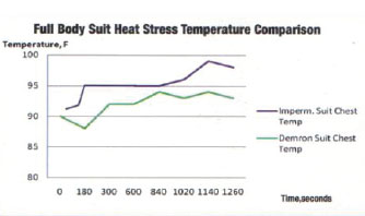 其它生物化學(xué)防護(hù)服采用絕緣材料制成,散熱性能很差,工作人員如果長期穿戴這類防護(hù)服,內(nèi)部溫度將變得極高。Demron使用特殊材料,可以進(jìn)行被動散熱,工作人員即使長期穿戴,也不會有任何不舒適的反應(yīng)。