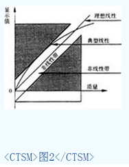 線性檢定是指加載試驗(yàn)時(shí),所加載荷與相應(yīng)示值之間的線性關(guān)系好壞的一種評估,常用天平示值與理想線性直線即從零載到*大秤量的連線之間的正或負(fù)*大偏差值表示,如圖2。