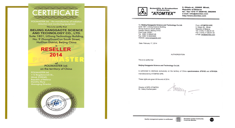 多年來,北京康高特科技有限公司通過與國(guó)外知名公司的合作,取得了*優(yōu)惠條件供應(yīng)儀器設(shè)備的資格。其中,白俄羅斯Atomtex公司和Polimaster公司的多款儀器設(shè)備一路暢銷,獲得眾多好評(píng)。今年Atomtex公司和Polimaster公司按流程對(duì)我公司進(jìn)行二次審核,根據(jù)我公司良好經(jīng)營(yíng)狀況、規(guī)范經(jīng)營(yíng)體系以及不斷發(fā)展壯大的規(guī)模,ATOMTEX公司和Polimaster公司延長(zhǎng)我公司在華代理權(quán)時(shí)限。今后,北京康高特科技有限公司,將繼續(xù)為大家推出Atomtex公司和Polimaster公司高品質(zhì),低價(jià)格的先進(jìn)儀器設(shè)備。
