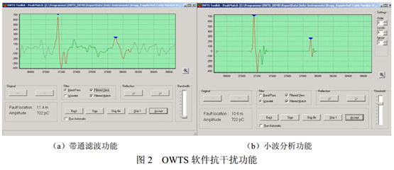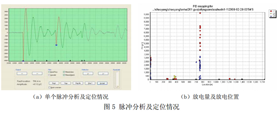 其中L為電纜長度,V為脈沖波在電纜中的速度,τ為兩個脈沖的時延。OWTS振蕩波電纜局部放電檢測和定位裝置采用該原理對電力電纜局部放電進行定位,如圖5所示。