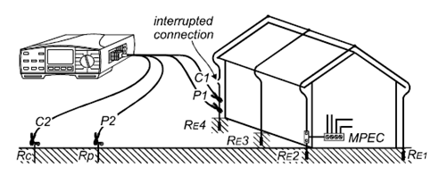 (b) 斷開(kāi)待測(cè)的接地電極,使用4線2探頭的方法測(cè)量